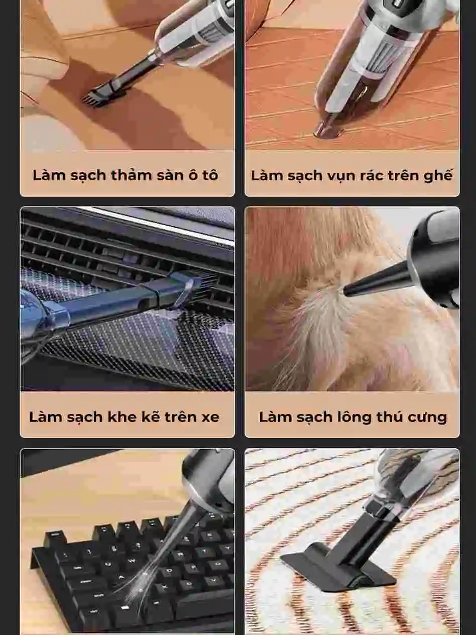 Chắc năng: Hút bụi giường nệm, ô tô, sàn nhà, lông chó mèo, tóc…